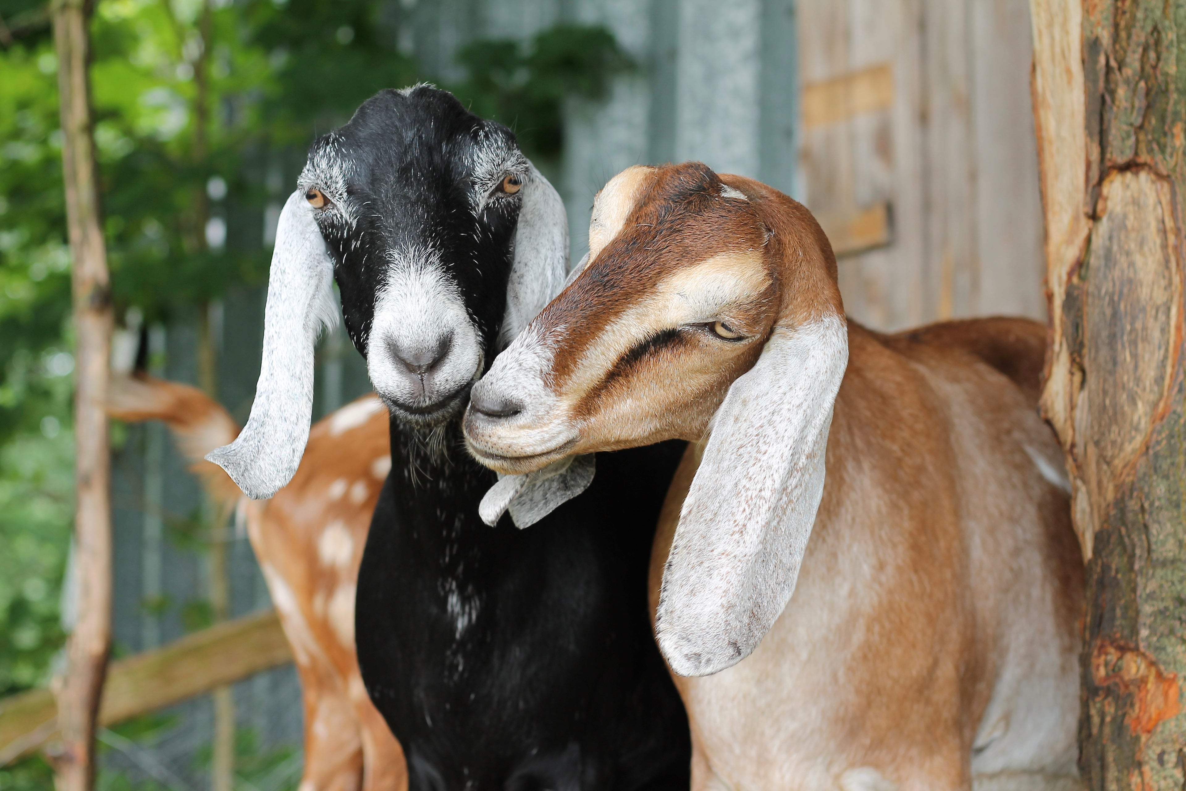 The milking process is very relaxed - they are milked just once a day and still keep their kids with them.